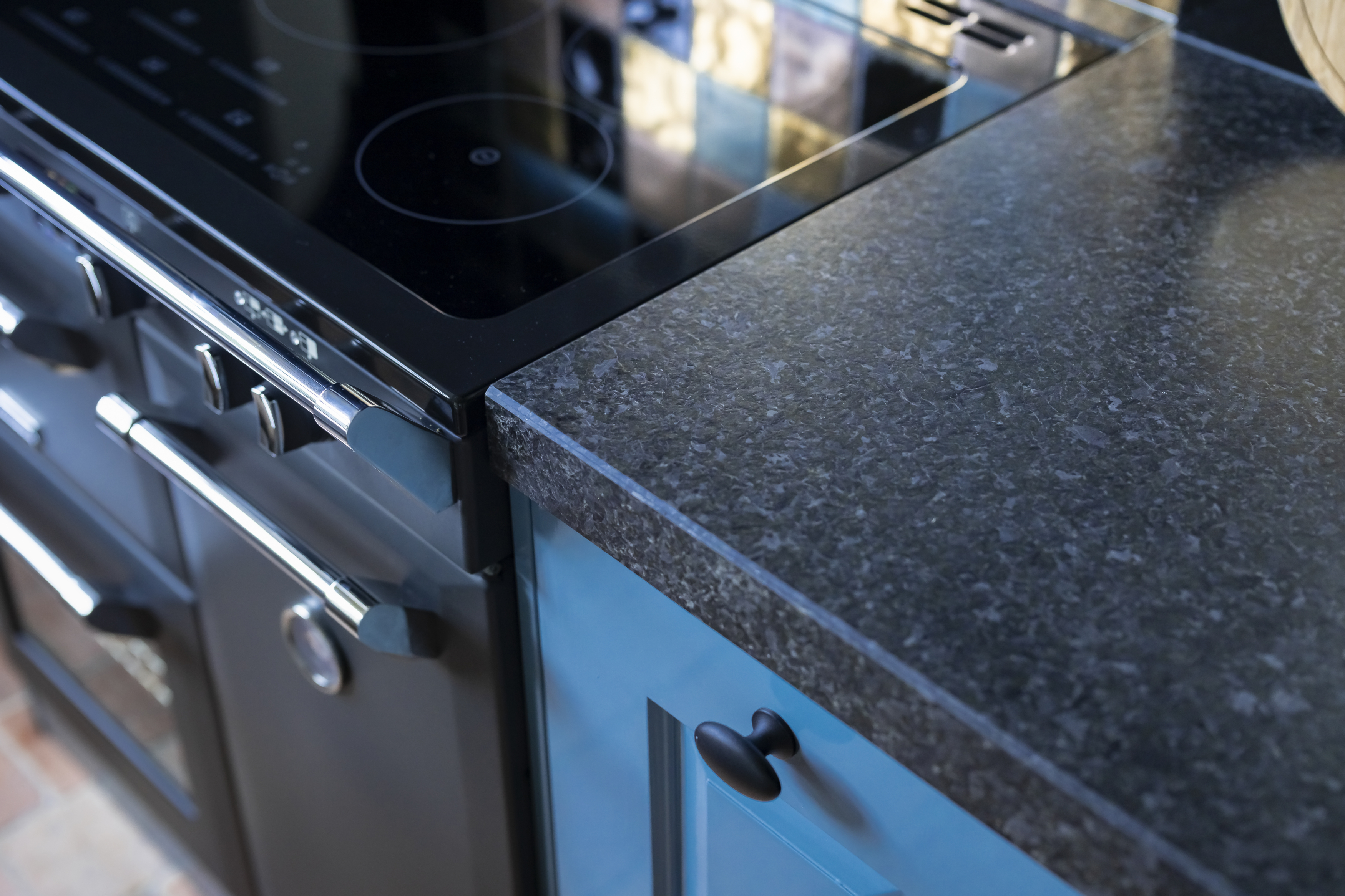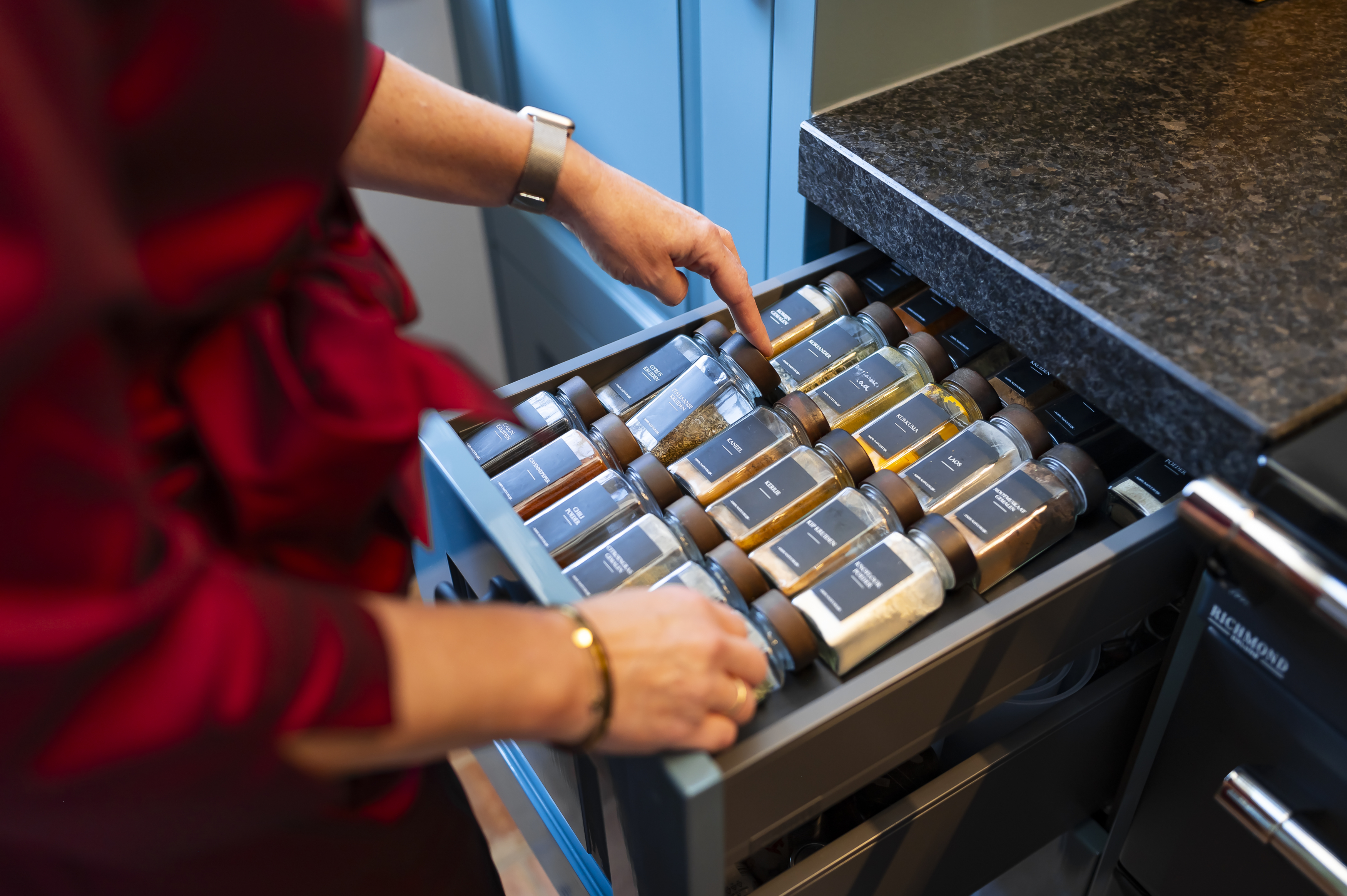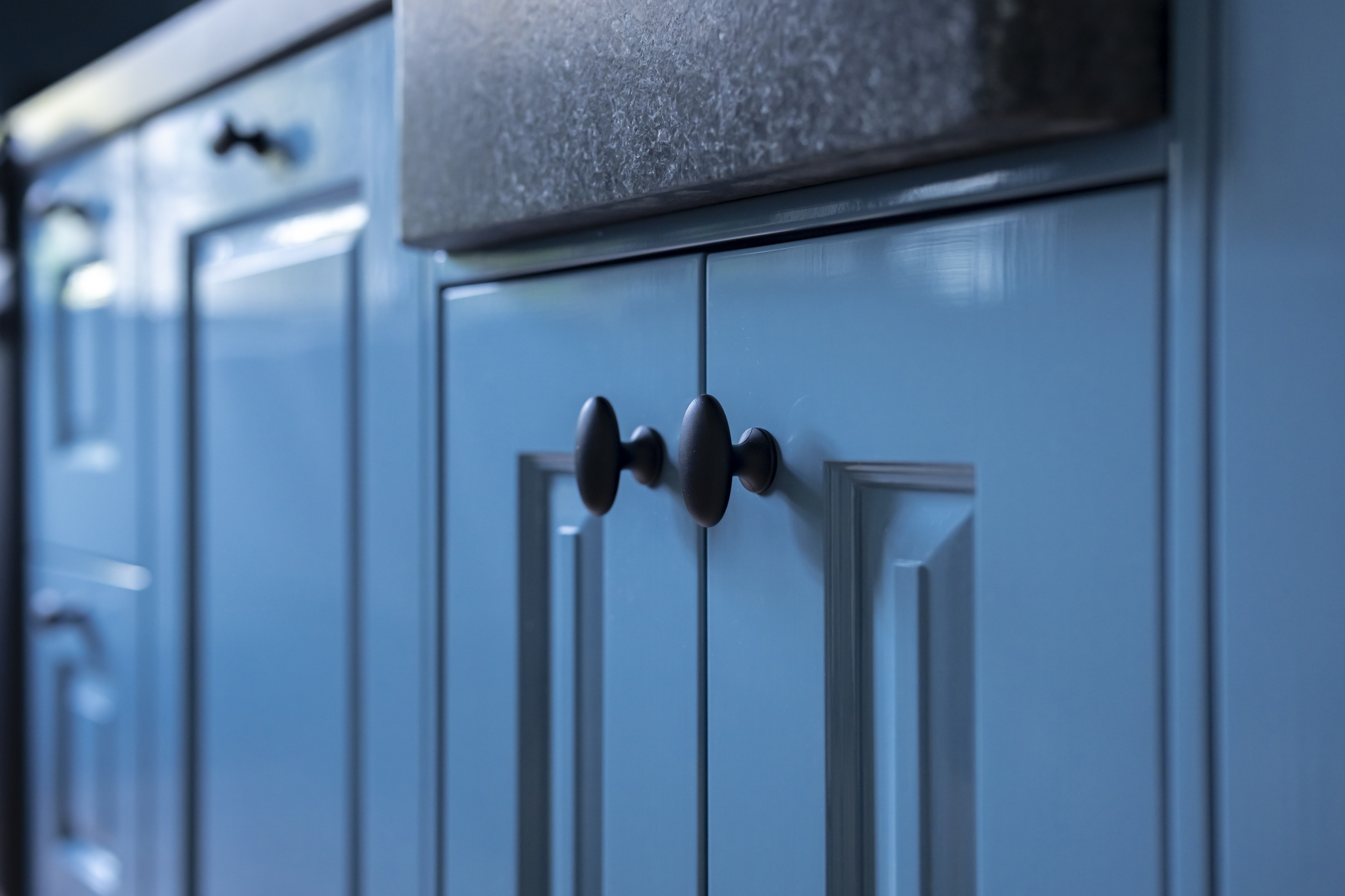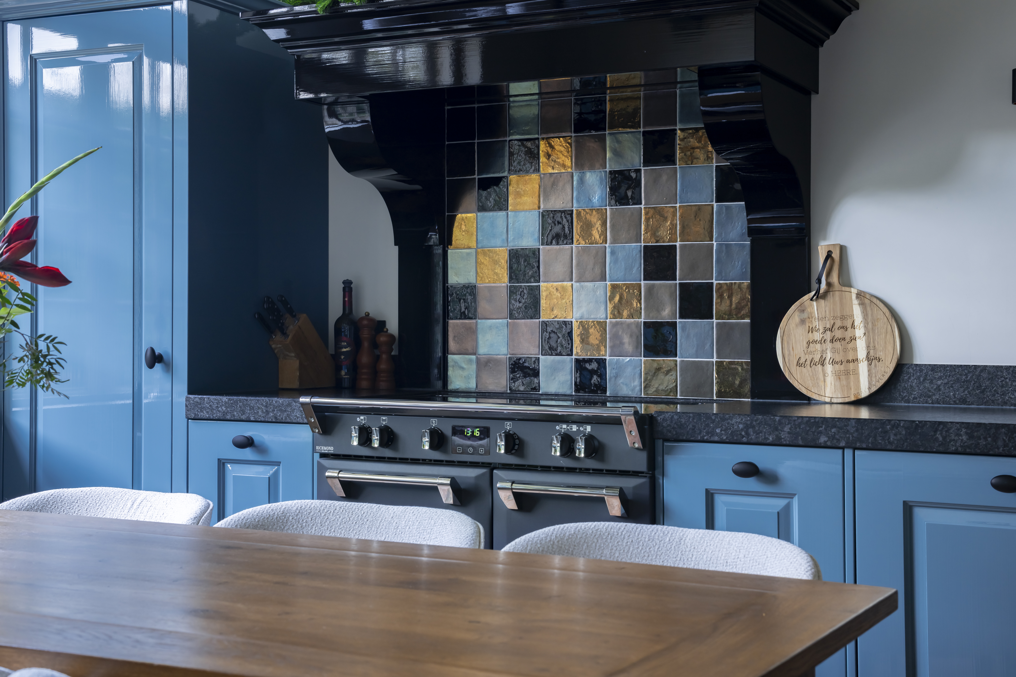 Deze keuken is gerealiseerd in een monumentale boerderijwoning en kenmerkt zich door klassieke details in de plinten en kroonlijsten. De kaderfronten zijn gespoten in Little Greene 326 Etruria, hoogglans en afgewerkt met een kwaststreep. Ook de plafondbalken en de servieskast zijn uitgevoerd in dezelfde kleur voor een warm geheel.