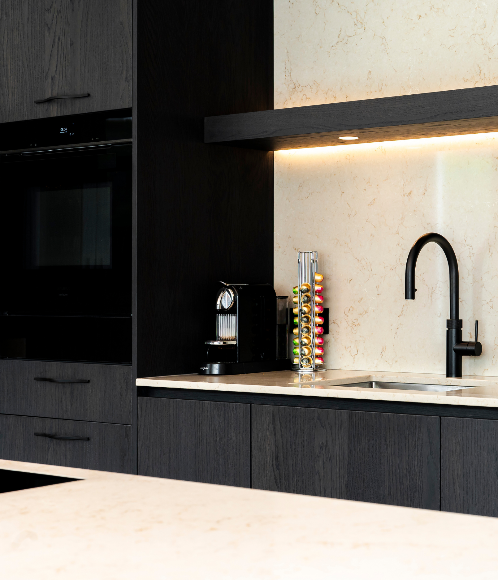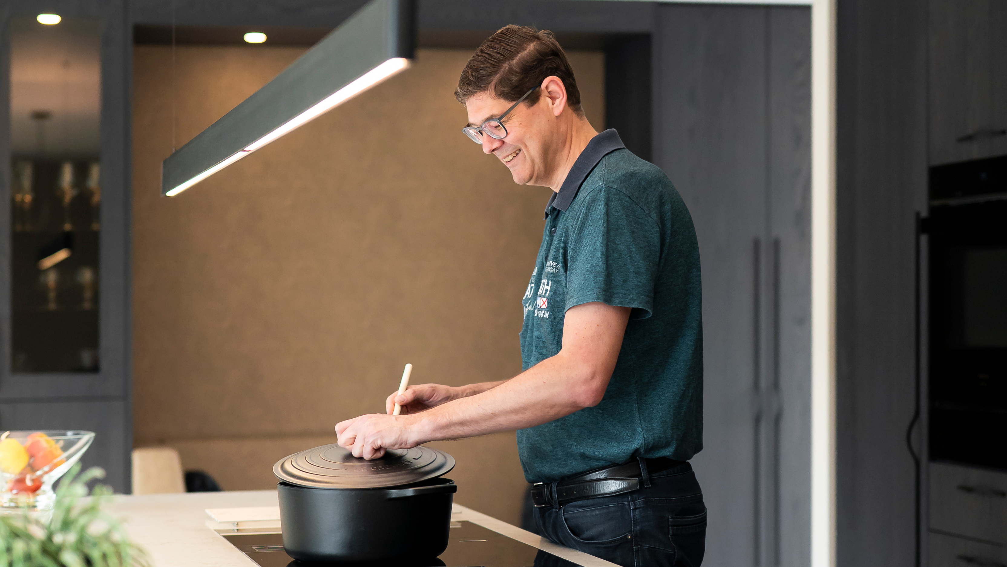 De kracht van De Keukenmakery zit volgens familie Wessels in het totaalplaatje. Geen losse onderdelen van verschillende leveranciers, maar één partij die alles maakt. Van de keuken zelf tot de zitplek in de kastenwand, de nis met verlichting en de garderobekasten. Geen rare openingen of kleurverschillen. Alles naadloos op elkaar afgestemd.