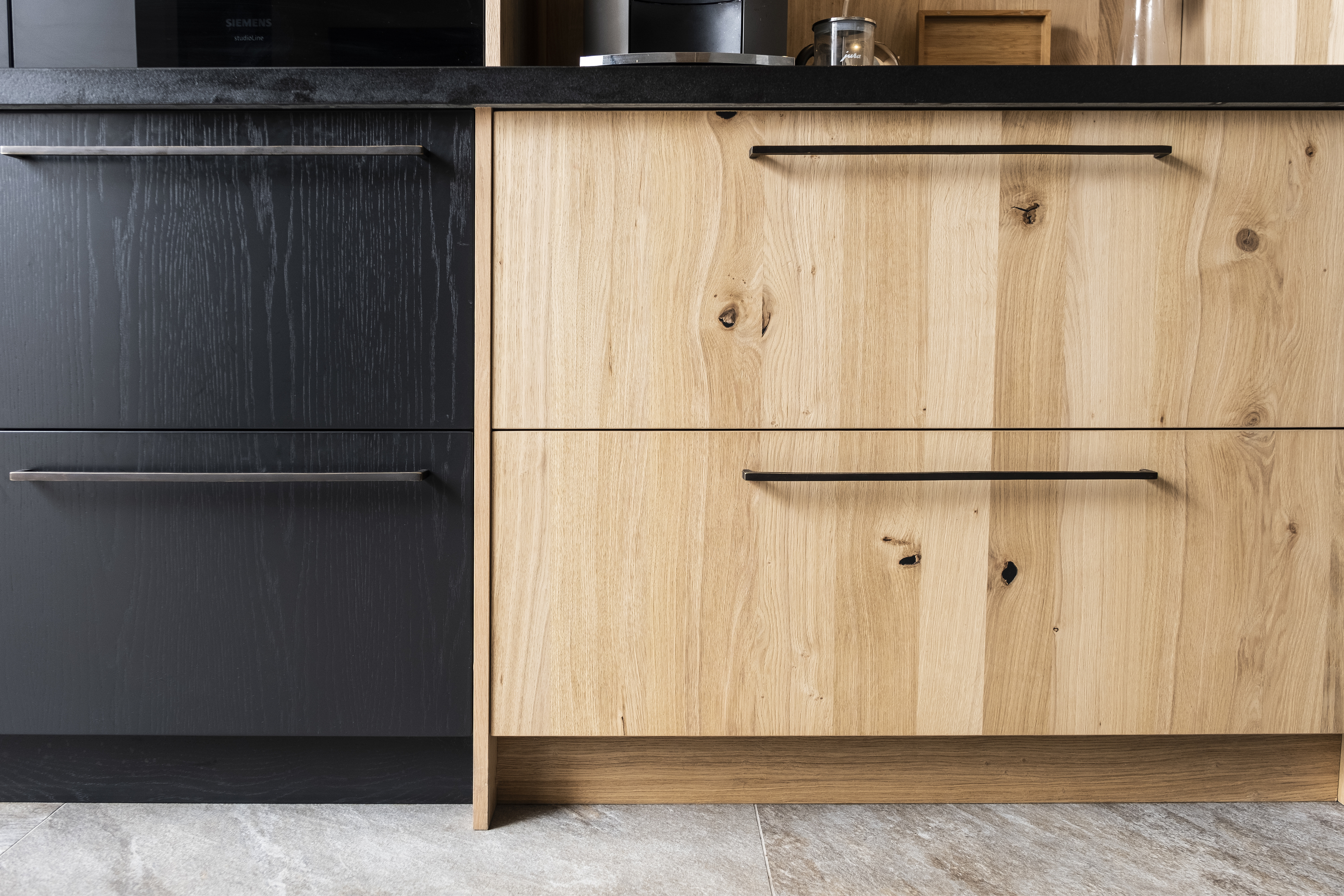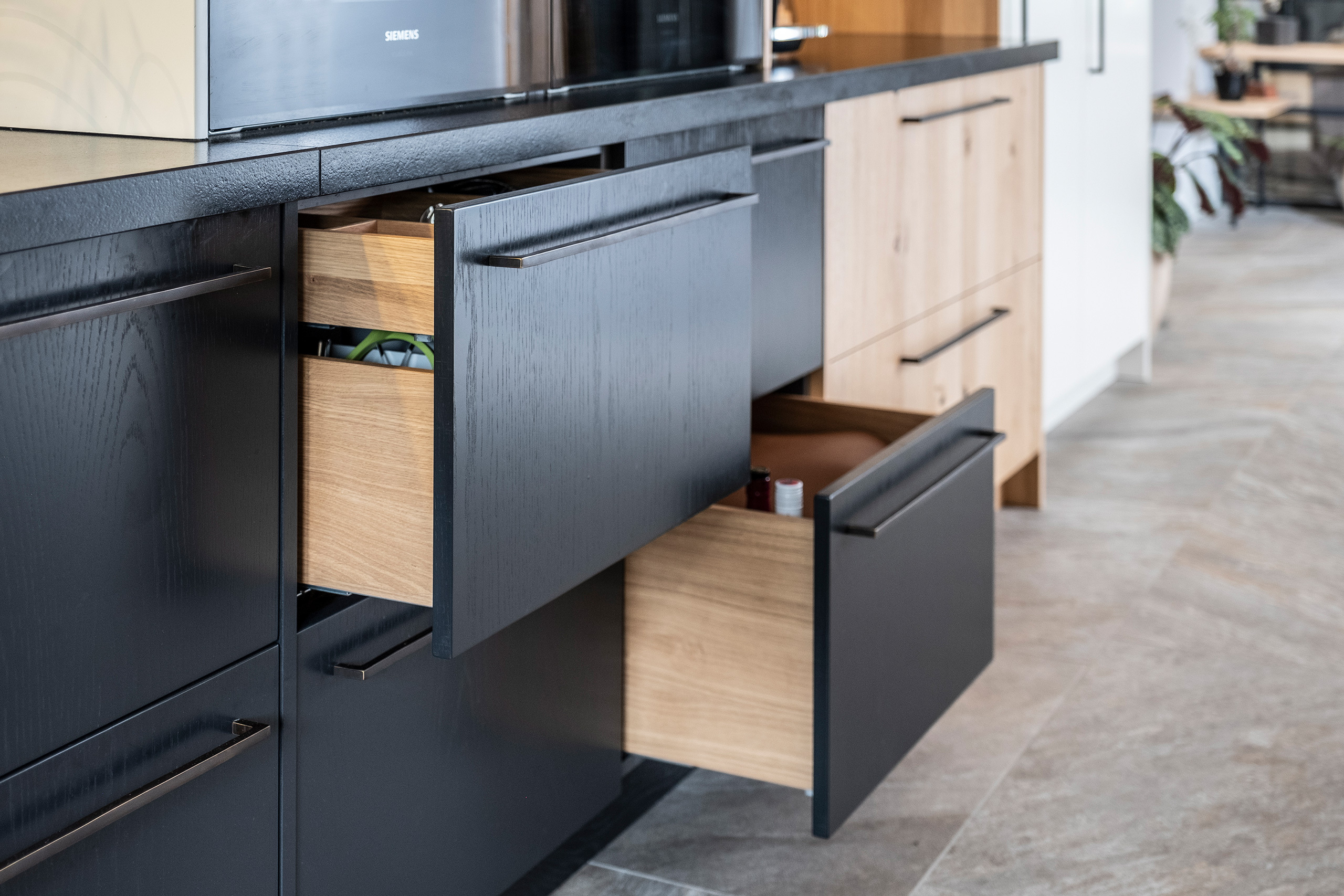 In Amersfoort hebben wij dit totaalproject mogen realiseren. De matzwart gespoten eiken fronten in combinatie met het blank eiken geven deze woning een prachtig geheel. De keuken bevat eiken laden.