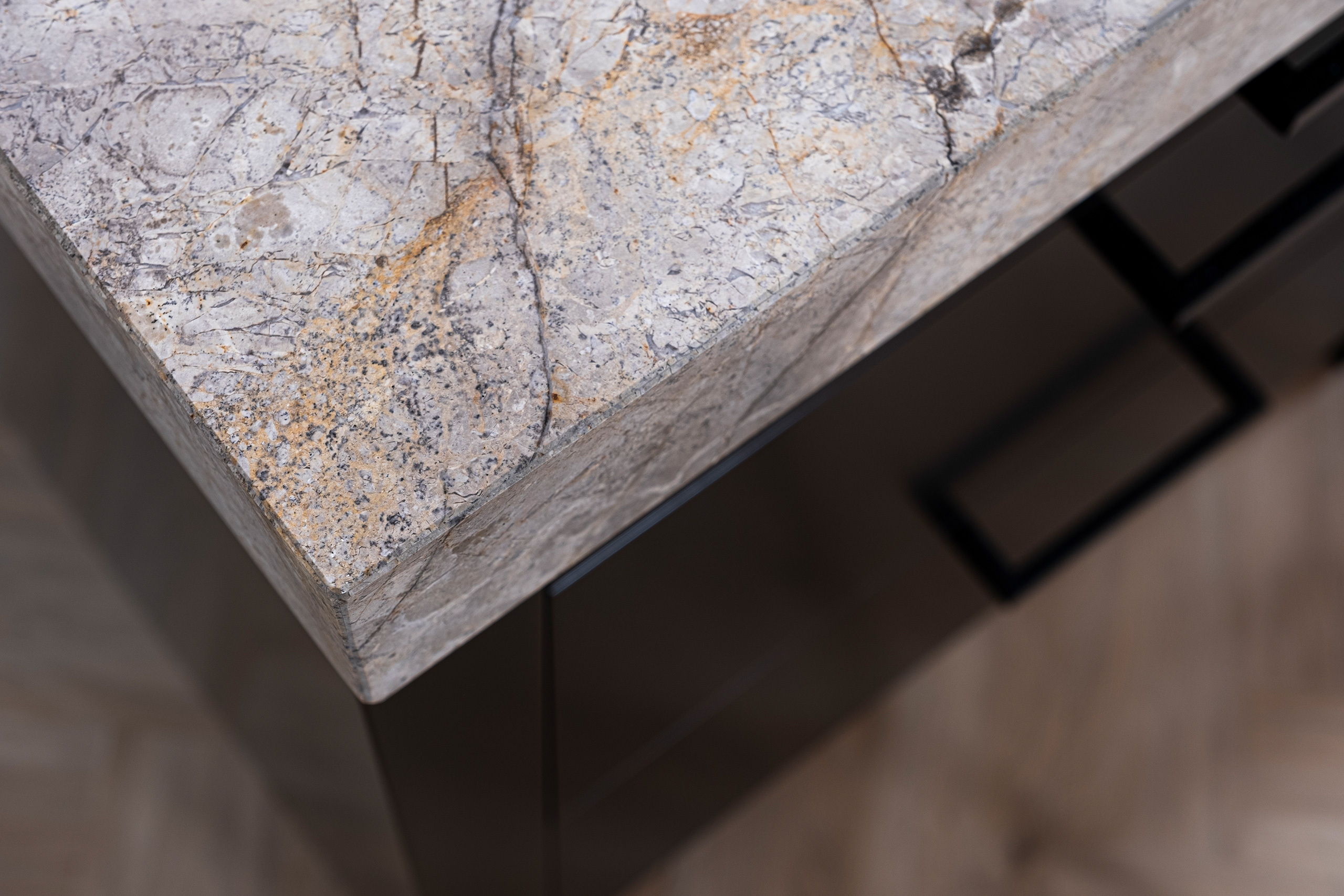 In Lunteren hebben wij deze stijlvolle keuken mogen realiseren. Alle wensen van de klant zijn vertaald in het resultaat. Er is gekozen voor matzwart gespoten fronten, met een marmer werkblad in de kleur Fior di Bosco. Ook de brons patina afwerking boven het kookgedeelte past goed bij deze materialen.